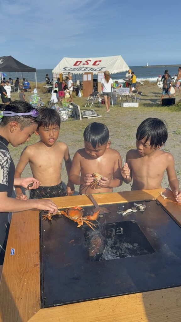 「海の学校」はサーフィンを通じて、ただ波に乗ることだけを学ぶ場ではありません。自然の力を感じ、仲間と笑い合い、支えてくださる方々とのつながりを大切にする場所です。今回のように台風で予定通りにはいかなくても、みんなで集まって笑顔を共有できたこと自体が、すでに“海の学校”らしい時間だったのだと思います。