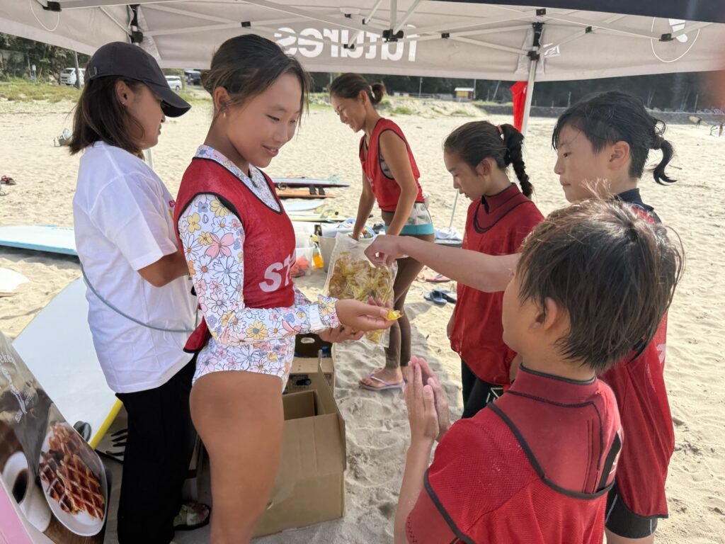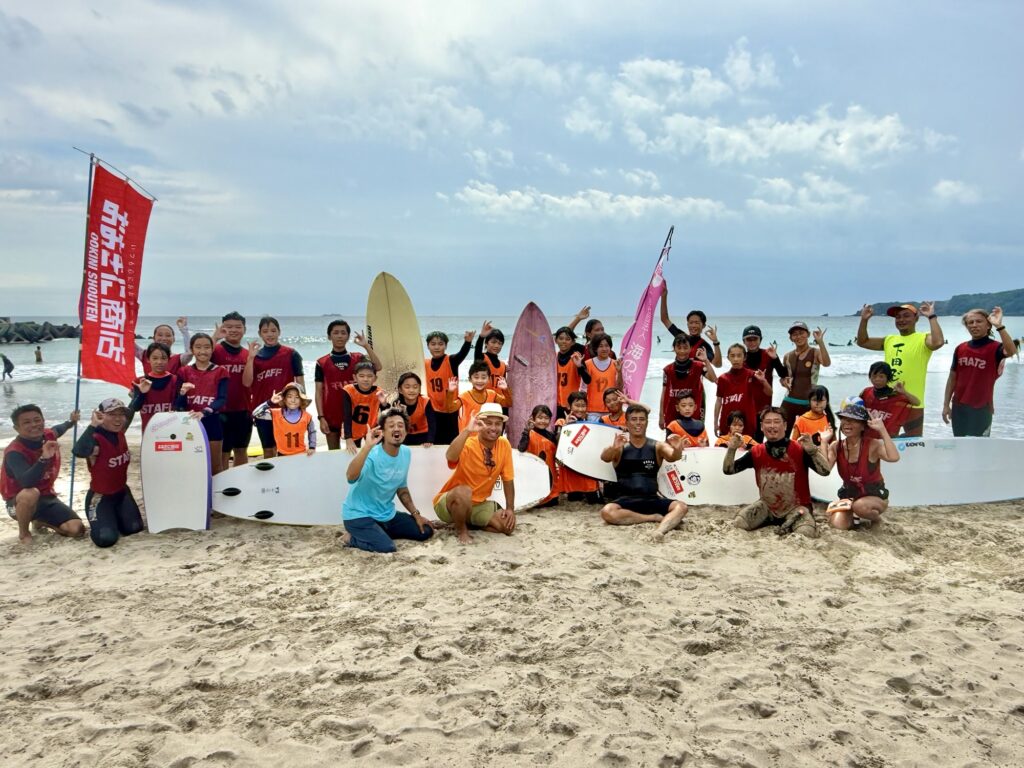 台風の残したうねりで波は少し大きかったですが、たくさんのキッズたちが参加してくれていました!